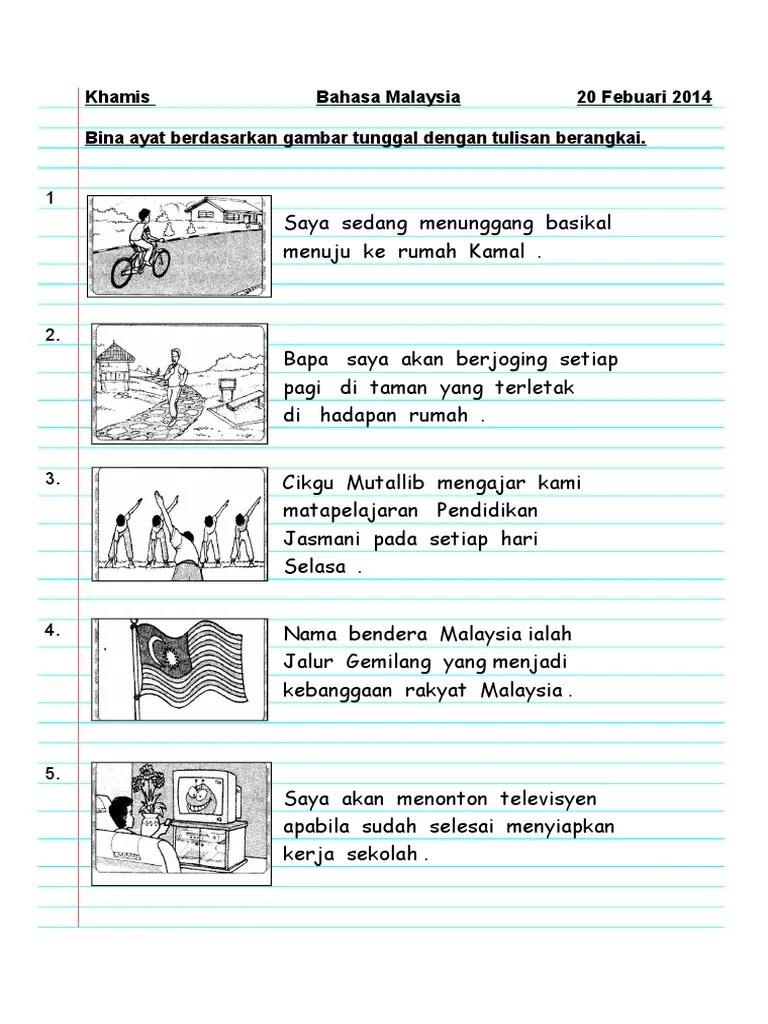 Kumpulan gambar tentang latihan bina ayat berdasarkan gambar, klik untuk melihat koleksi gambar lain di kibrispdr.org. Cara membina 5 ayat berdasarkan gambar. Panduan hebat cara membina ayat berdasarkan gambar rangsangan (upsr bahasa melayu) ini merangkumi gambar rangsangan berserta kata kerja bagi . Seorang lelaki duduk di atas kerusi sambil membaca surat khabar. 2.siti menyiram pokok bunga di halaman rumah. Contoh bina ayat berdasarkan gambar (share for free). Tulis lima ayat lengkap tentang aktiviti dalam gambar. See more ideas about malay language, kata, ielts writing. If playback doesn't begin shortly, . Contoh soalan bahagian a : Mula membina ayat pada gambar di hadapan.